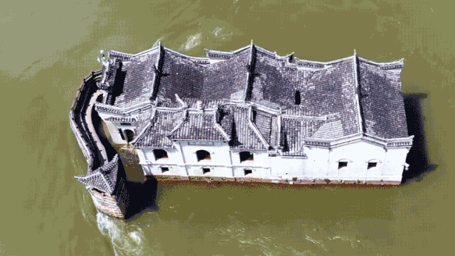 其实这个就应该归功于观音阁的底座龙蟠矶了。龙蟠矶形状似船舷一般,能够很好地分解水流,顺势而卸力,多年来才能够保持不倒,而观音阁又与龙蟠矶结合巧妙融为一体,真的有鲁班鬼斧神工般的创造力,不仅看上去巍峨雄峻而且神秘威严!