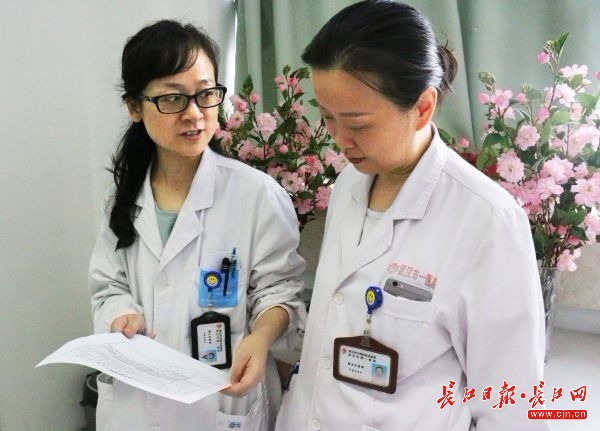 李培凤医生(左)和同事正在传看表扬信 通讯员代雨朦 摄