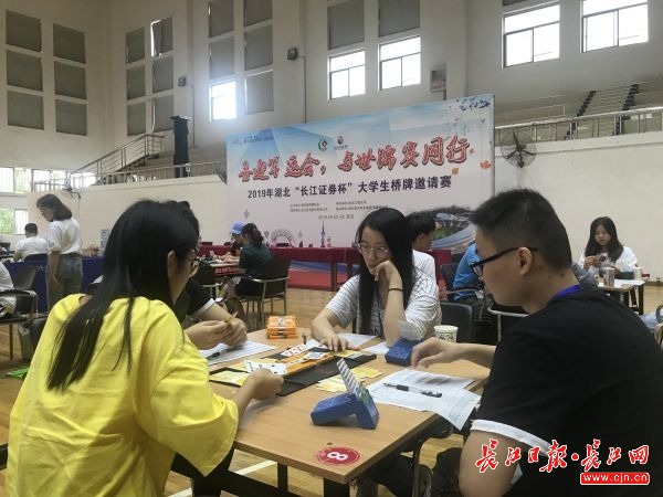 长江日报-长江网9月20日讯 2019湖北“长江证券杯”大学生桥牌邀请赛20日在武汉工程大学(流芳校区)拉开帷幕,来自全国30所高校的桥牌代表队在这里同台竞技。