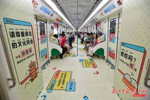 下午2:30左右,4号线“城市档案馆”专列抵达洪山广场站,登上这列移动的“城市档案馆”,让人不禁感叹,武汉这座城市有这么多故事。