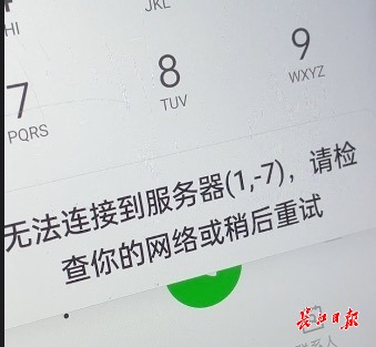 手机显示无法连接网络。 记者尹勤兵 摄