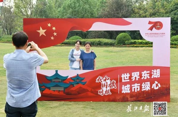 ◇ 昨日上午,东湖听涛景区为市民游客发放1000面小国旗,景区内的七大“我和国旗同框”创意打卡展板也吸引了众多市民游客合影。