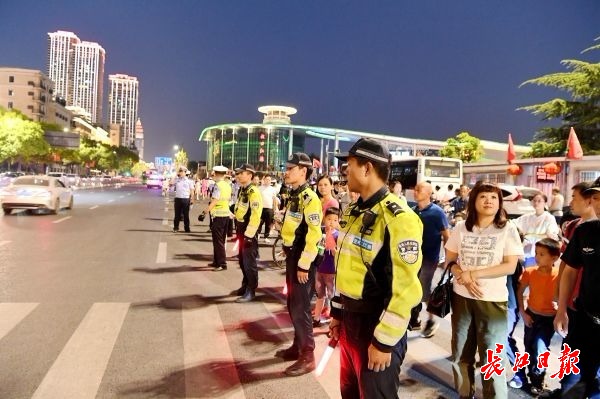 武汉警方在省公安厅的统一领导和指挥下,细化责任、强化措施,在观景人群较集中的长江两岸江滩重点通道、路口、人行天桥、梯道口、江滩闸口、码头设置隔离设施,并设置“单循环”路线,有序引导、分流、疏散观众,严防发生拥挤踩踏。同时,交管部门按照“内外分隔、以面保点、精准管控、智慧诱导”的原则,对车辆进行引导。