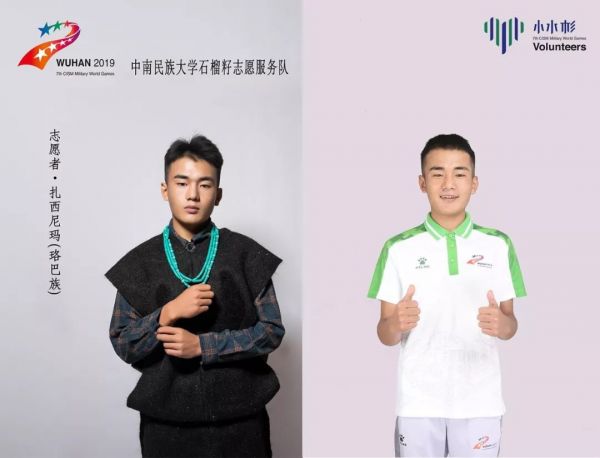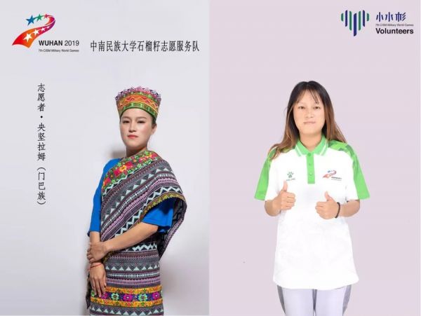 我是中南民族大学民族学与社会学学院的一名珞巴族学生。2019年,我有幸成为一名军运会志愿者,不仅仅是代表我的学校,也是代表我的民族参与军运会,这让我深感意义重大。我将认真参与各项服务工作,履行好志愿者义务,向外国友人展现我们的志愿精神,展现出珞巴族少数民族志愿者的风采!