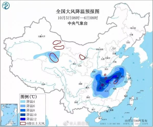 据中央气象台消息,今天早上东北大部、华北、黄淮等地出现明显降温,吉林、河北、天津、山东、河南等地的部分地区降温幅度达10~13℃;中东部地区降温持续,主降温区域将位于江苏、安徽、湖北、湖南等地。