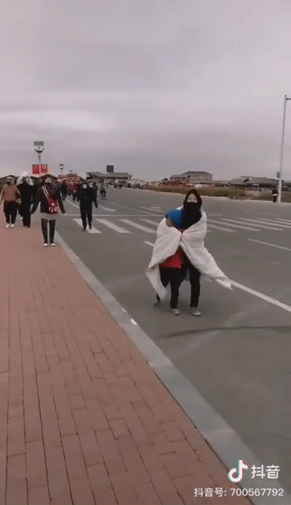 但是冷归冷,玩还是得玩被子、浴巾、雨衣各地游客把一切能用上的御寒神器都裹在身上了
