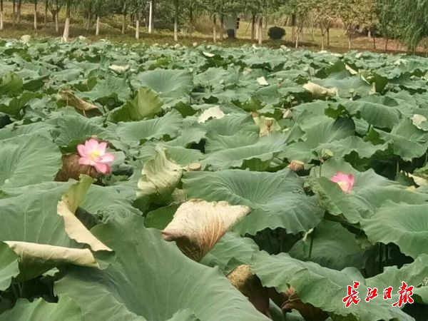 今年入秋以来,武汉地区的气温一直保持在较高状态。受此影响,武汉地区池塘湖泊中的部分荷花因处于光照条件较好及水分充足的小环境中,出现了叶子枯萎掉落时间推迟及花期延长现象。