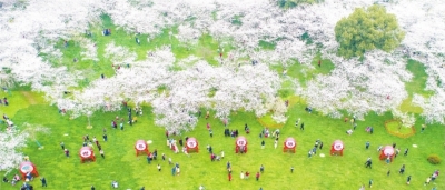 今年3月20日,央视“两会”特别报道直播前,播放了一组题为“新时代中国春暖花开”的风光片,其中收录了武汉东湖樱花园美景。解说词这样说道:“持续多年的生态保护,让这里的湖光山色一年更胜一年……四通八达的高铁动车带来了五湖四海的游客,每天数万名游客入园赏樱,真正让绿水青山变成了金山银山。”