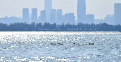 通过持续的水生态修复,东湖水质逐年提升,水鸟蹁跹,成为美丽中国人与自然生态和谐共处的城中湖典范