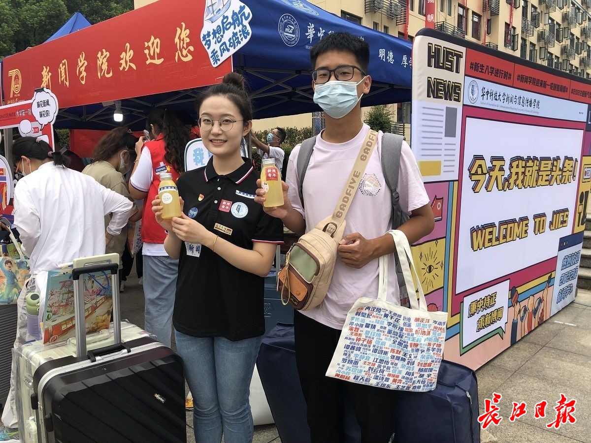 胡馨月老师马上送上写有164名新闻专业新生名字的帆布袋,另外还有辅导员、班主任老师制作的冰鲜柠檬水。据了解,为了保证新鲜,这些柠檬水,是老师们凌晨5时许起床赶制出来的。张皓晨说:“新闻学院老师太细心了!”(长江日报记者胡义华 陈晓彤 通讯员高翔 李晓聪)