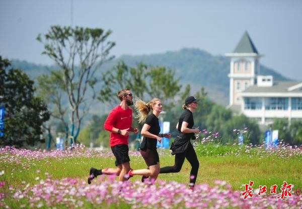 外籍运动员在海军工程大学木兰湖校区里慢跑,享受阳光。记者彭年 摄