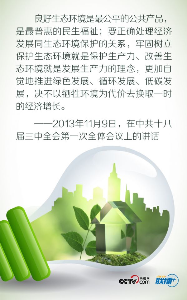 “绿水青山就是金山银山”“像保护眼睛一样保护生态环境”“望得见山、看得到水、记得住乡愁”……党的十八大以来,习近平关于生态文明建设的许多论述,人民群众已是耳熟能详。如今,我国正大力推进生态文明建设,以不断满足人民群众对优美生态环境日益增长的需要。央视网《联播+》整理其中关于“绿色低碳”的重要讲话,与您一起感受美好生活新风尚。
