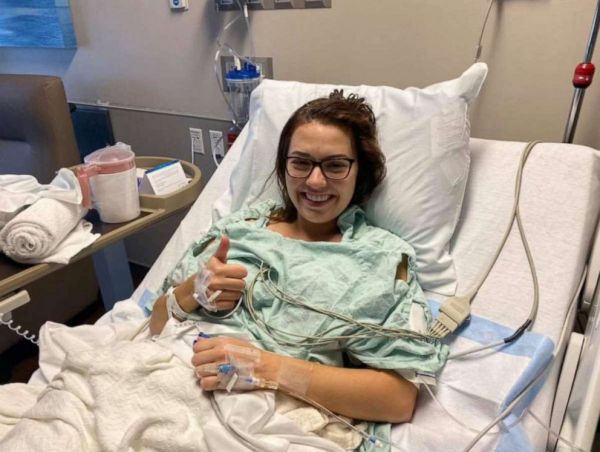 最终手术进行的非常顺利,手术结束后,珍娜被送往重症监护病房,她对着镜头竖起了大拇指。