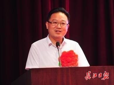 武汉市解放中学教师吴又存在报告会上发言。记者彭年 摄