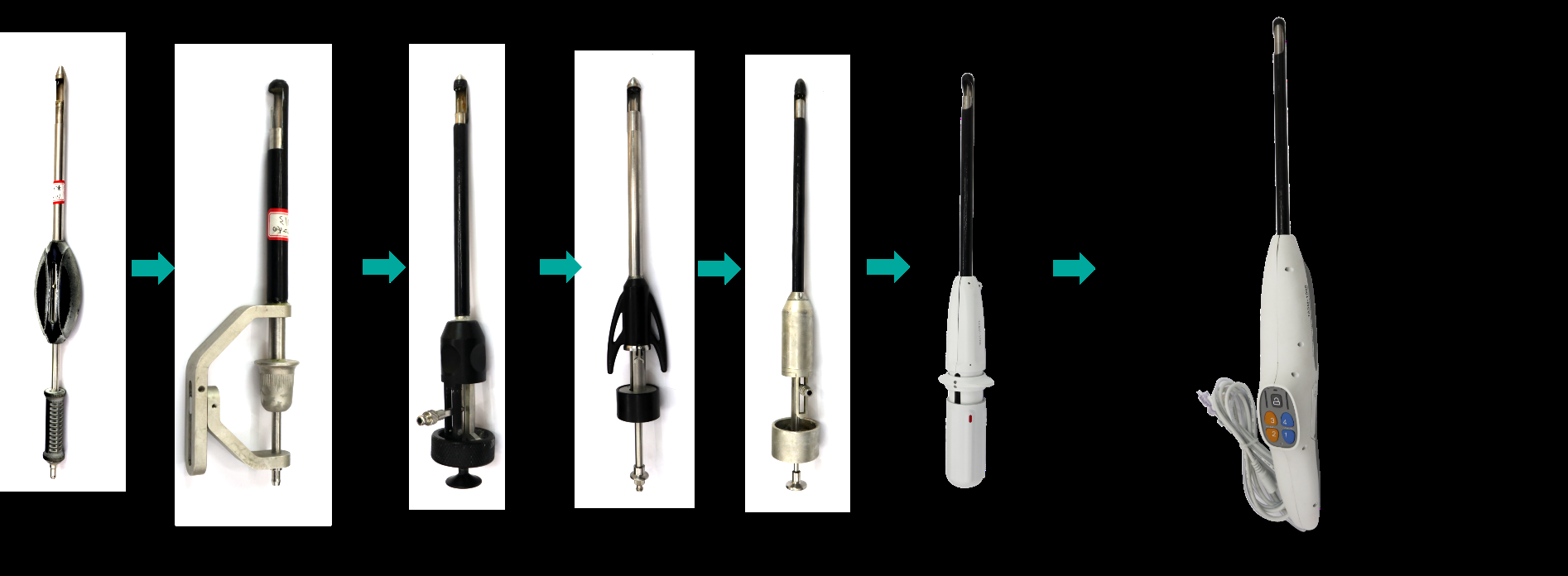 魏翔和团队不断针对实验中出现的新问题改进工艺,技术攻关,根据具体手术需求完善器械设计:改弯头为直头,为器械穿上“隐形衣”(加层涂料)……历经3年的试制、实验、改进,研发7次原理样机迭代后,形成了最终版定型样机。