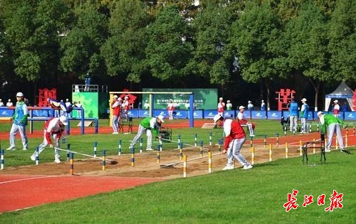 军运会期间,志愿者在空军五项障碍跑比赛中协助裁判整理沙坑 记者李永刚 摄(资料图片)