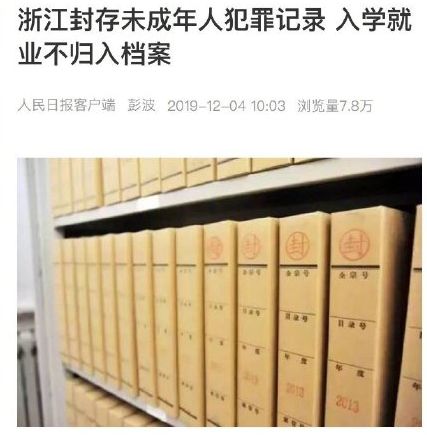日前,浙江出台《浙江省未成年人犯罪记录封存实施办法》,规定对于犯罪记录被封存的未成年人,入学就业不归入档案。自2016年以来,浙江省检察机关通过及时封存未成年人犯罪记录,让145名涉罪未成年人顺利考上了大学。