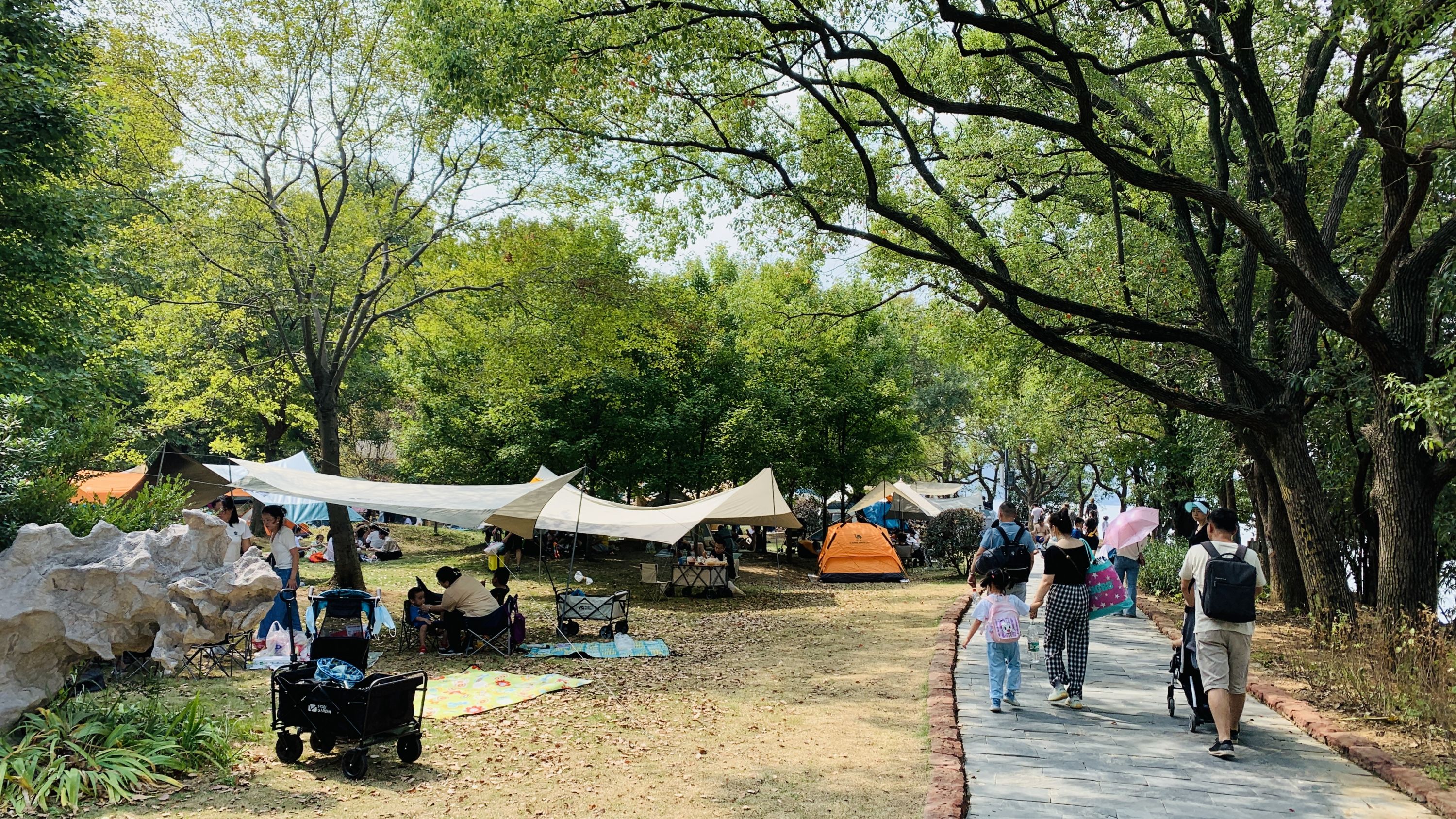 市民游客在东湖落雁景区“安营扎寨”。 通讯员万娜 摄