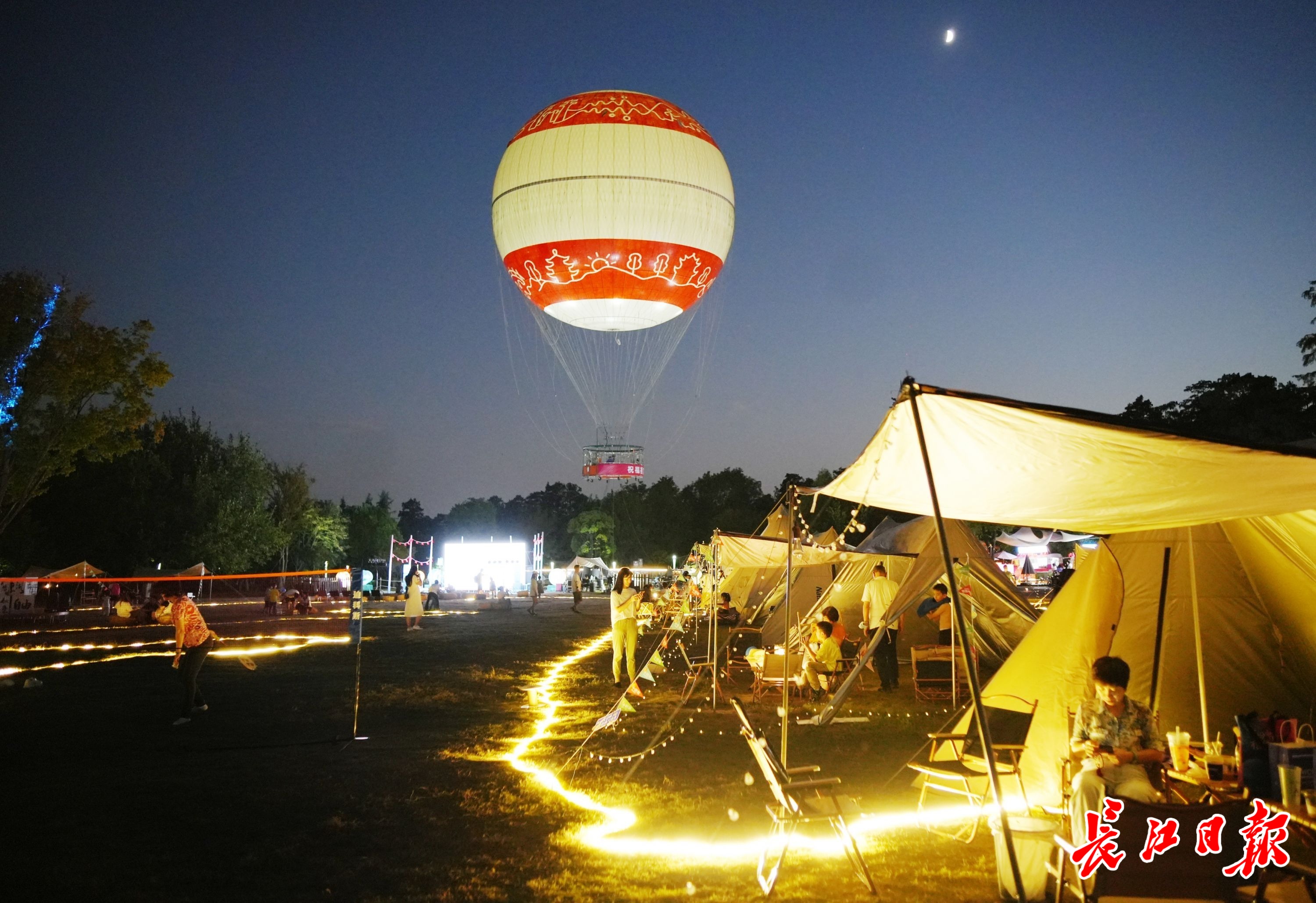 在东湖开启“夜间露营”