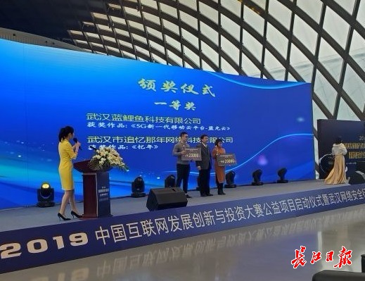 来自中国互联网和网络安全行业的负责人、专家上台,共同触摸电子启动球开启活动,并为10家获奖企业颁奖。该赛面向海内外招募互联网领域的创业团队,本土企业武汉蓝鲤鱼科技有限公司和武汉市追忆那年网络科技有限公司,分别以“5G新一代移动云平台-蓝光云”“忆年共享相册”项目获得一等奖。“我和团队开发的共享相册是一款图片共享存储的工具类小程序,用户可以永久存储照片,还能互动交友。”追忆那年网络科技有限公司CEO、“95后”创业者黄衍博曾经历两次创业,她感慨,对于年轻人太需要这类创业大赛的平台展现才华、把握机遇。