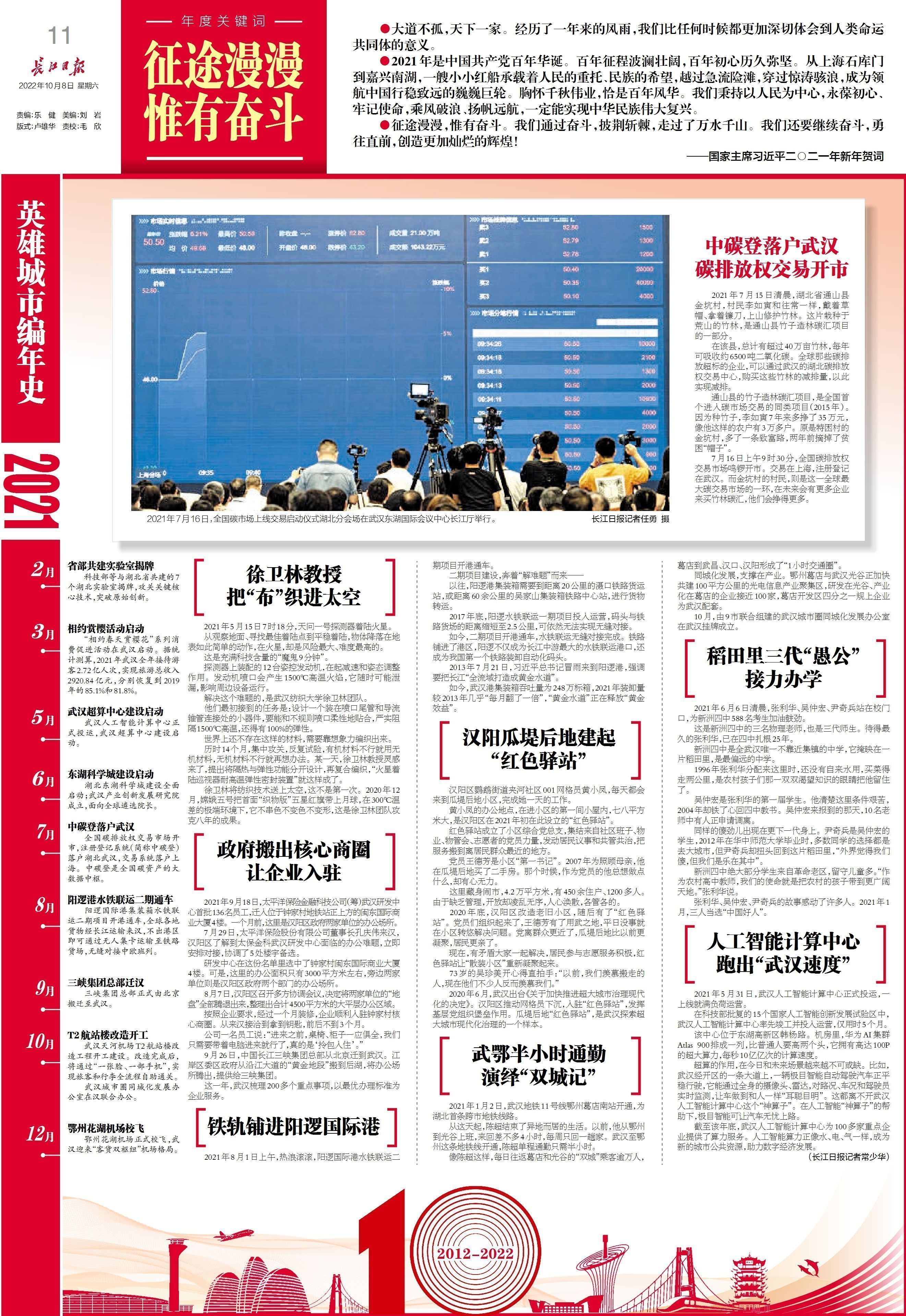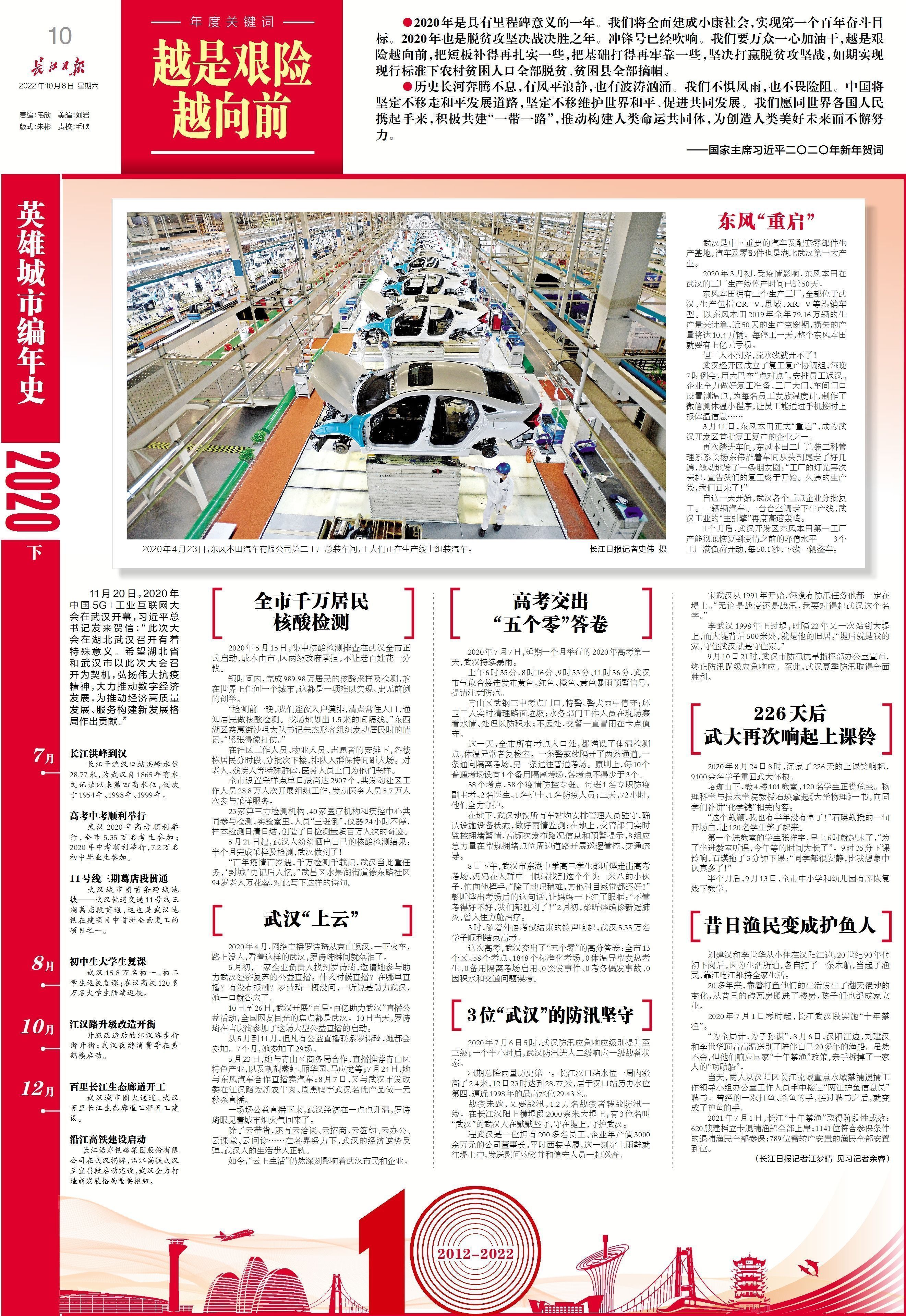 新时代十年,武汉的英雄品格淬炼得熠熠生辉。在习近平总书记的指引下,英雄的人民无惧任何艰难险阻,将继续阔步向前。(长江日报记者郑汝可)