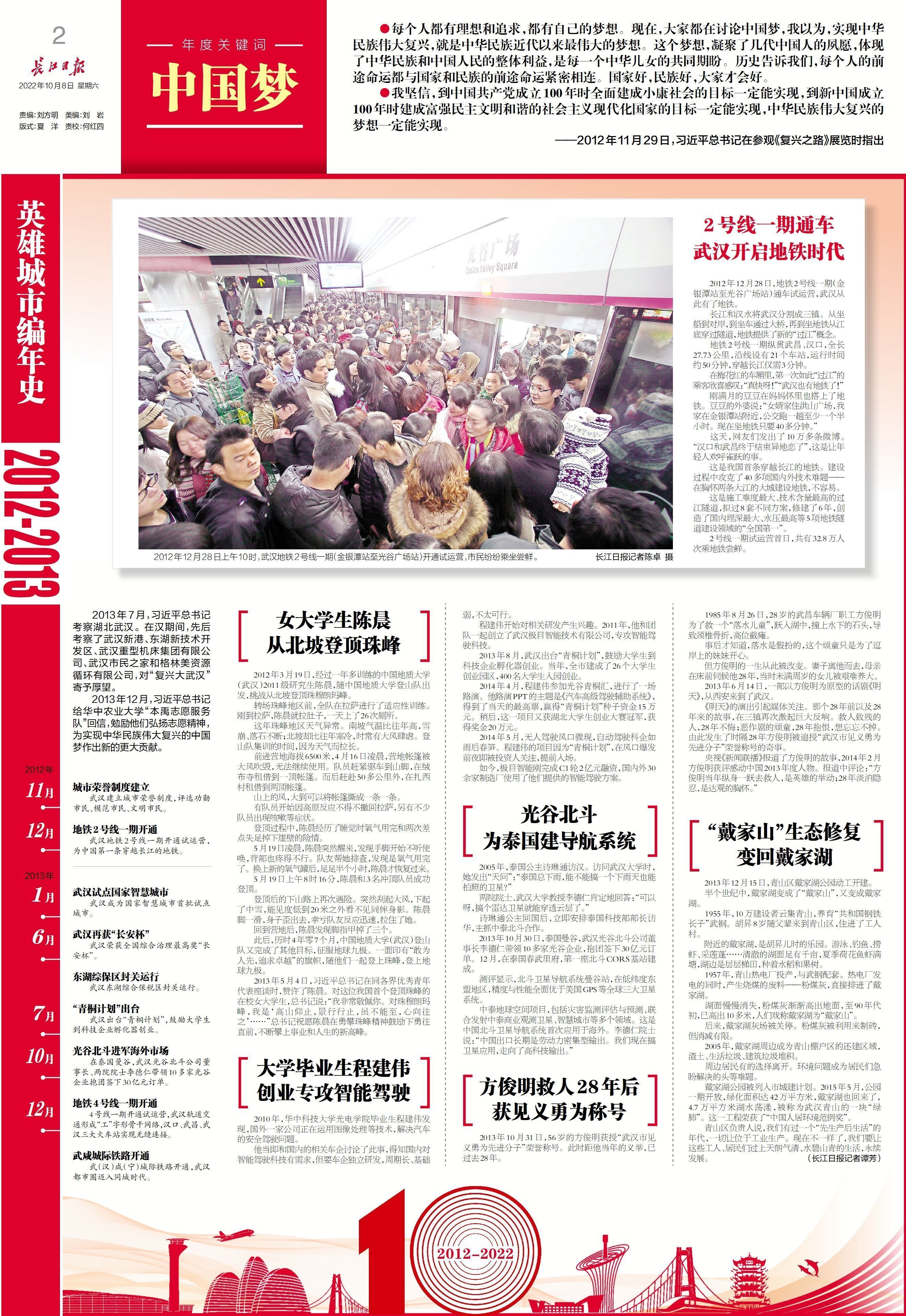2012年12月28日,地铁2号线一期(金银潭站至光谷广场站)通车试运营,武汉从此有了地铁。