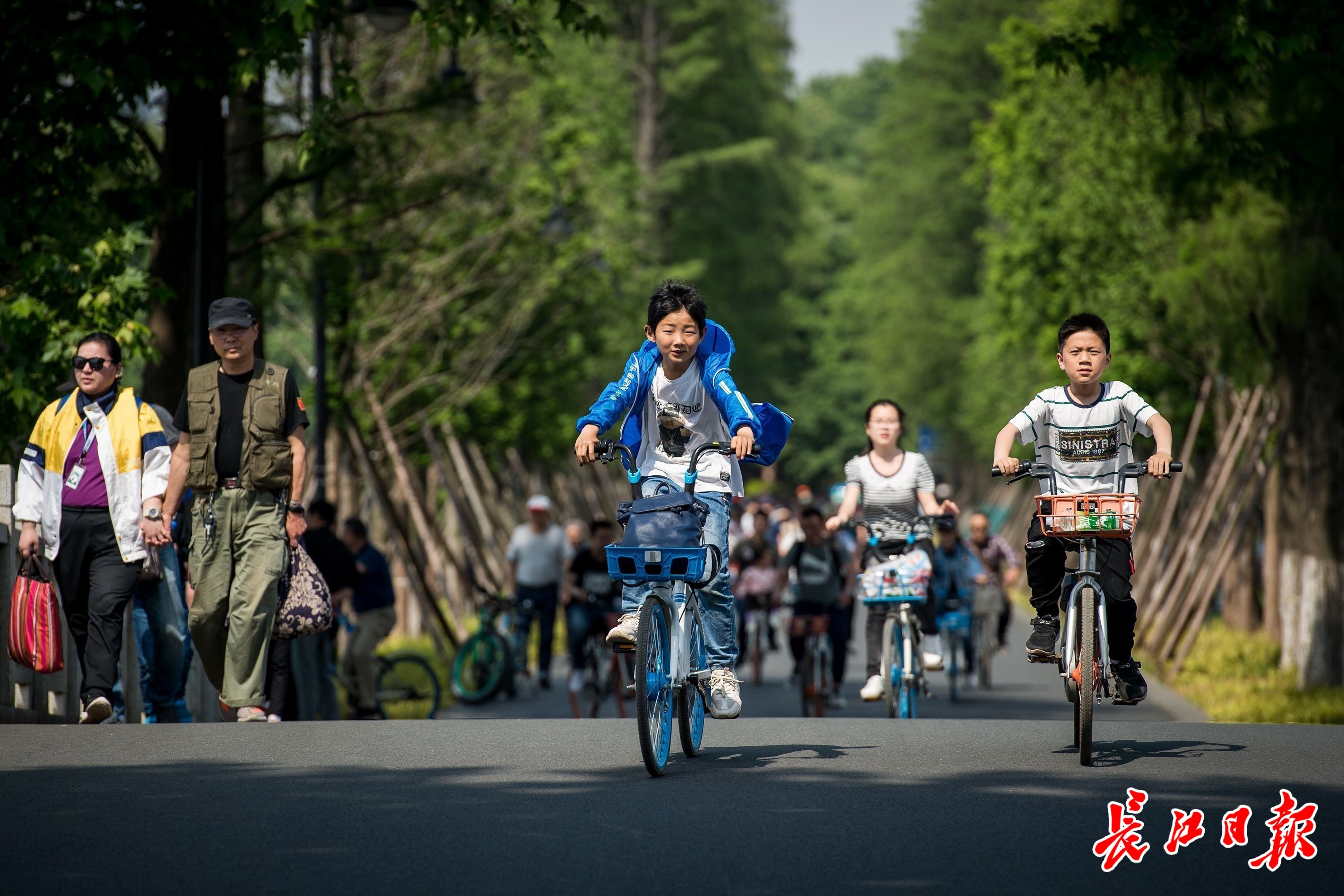 小朋友在东湖绿道快乐骑行。长江日报记者任勇 摄