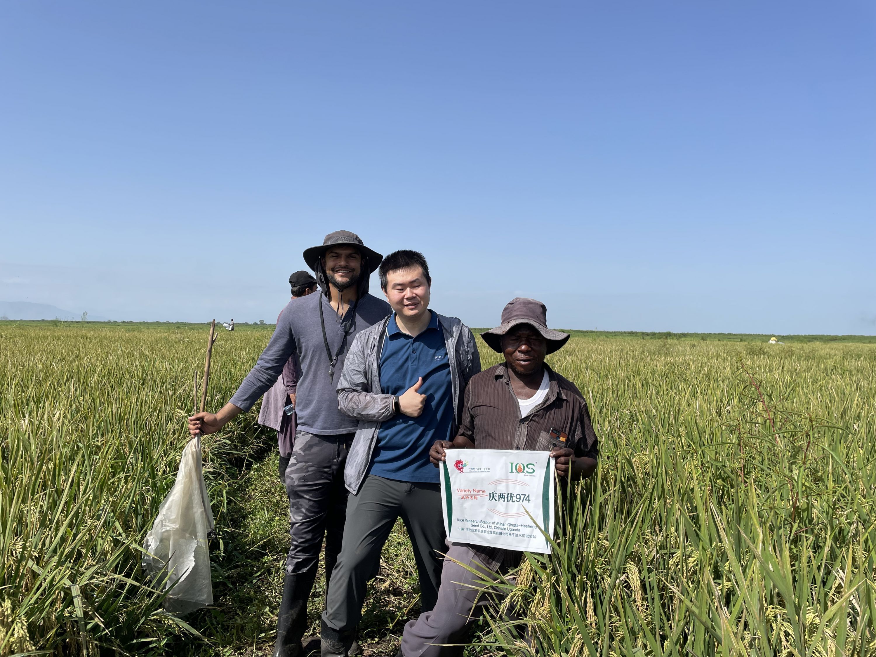 庆发禾盛技术人员和乌干达农民在水稻试种基地。(长江日报资料图)