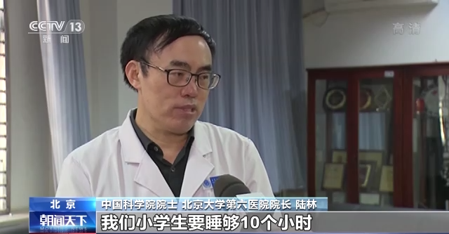 中国科学院院士 北京大学第六医院院长 陆林:小学生要睡够10个小时,初中生要睡够9个小时,高中生要睡够8个小时,这样才能保证他白天大脑功能非常好地去集中精力学习。