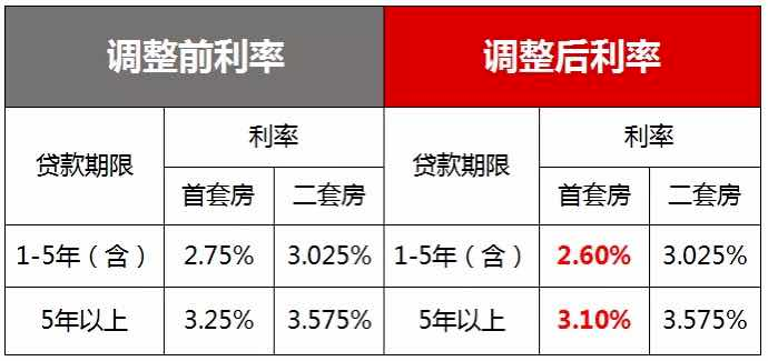(一)五年期以下(含5年)首套首贷个人住房公积金贷款利率由2.75%下调为2.6%,五年期以上首套首贷个人住房公积金贷款利率由3.25%下调至3.1%。