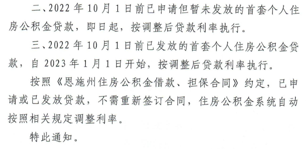 (三)对于2022年10月1日(含)后受理的首套个人住房公积金贷款,执行调整后的个人住房公积金贷款利率标准。