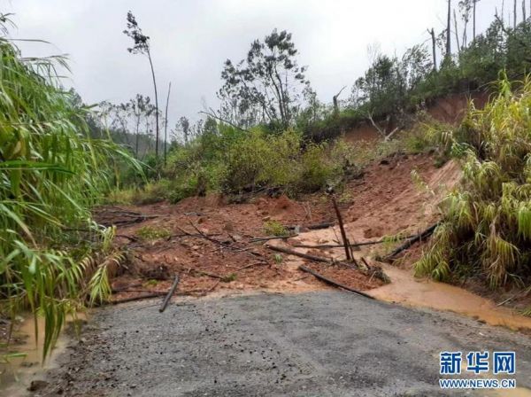 12月28日,在斐济南部坎达武岛,一条通向码头的道路被山体滑坡阻断。