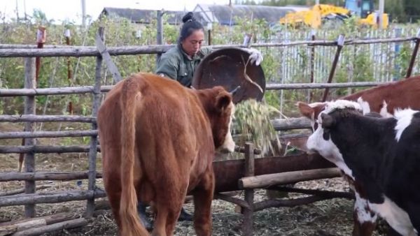 载誉而归的刘洪霞回家以后更加勤奋,每天早上三点钟就开始了一天的农活。打草、喂牛、整理果园、清扫牛圈刘洪霞样样做的认真细致。