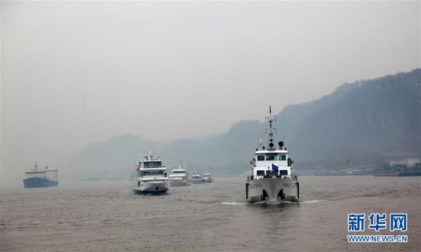 江苏省渔政、公安、海事等部门执法人员在长江上开展联合执法行动(2019年3月1日摄)。新华社发(苏渔 摄)