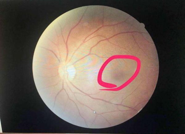 红圈处为黄斑区盘状水肿 通讯员马遥遥供图