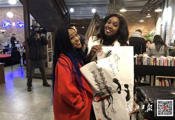国际友人展示自己的中国画作品 长江日报记者毛茵 摄