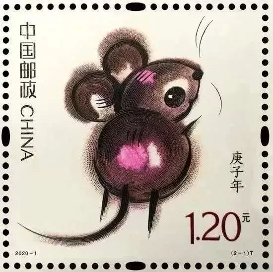 《庚子年》特种邮票首发仪式昨日在中国国家博物馆举行,该套邮票由著名艺术家韩美林设计。图为“子鼠开天”,一只形象可爱的老鼠腾空跳起,抬头望天,奋力咬破混沌,寓意民间传说中的“鼠咬天开”。
