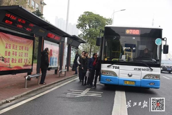 1月3日,一辆708路公交车在四新南路梅林西路站上下乘客 通讯员鲁娟 摄