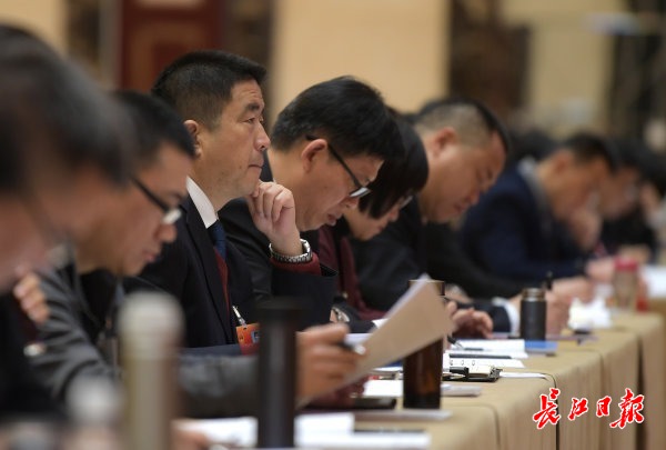 市人大代表在认真听取政府工作报告 记者史伟 摄
