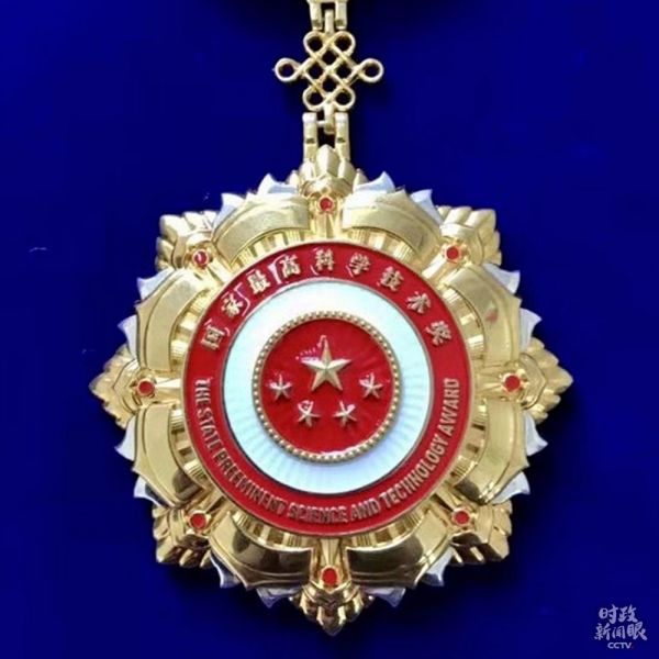 △国家最高科学技术奖奖章中心图案为五颗五角星,象征国家奖;外圈采用飘带、牡丹花和翅膀等视觉元素,包含荣誉、吉祥和科技事业展翅高飞等美好寓意。(国家科学技术奖励工作办公室供图)