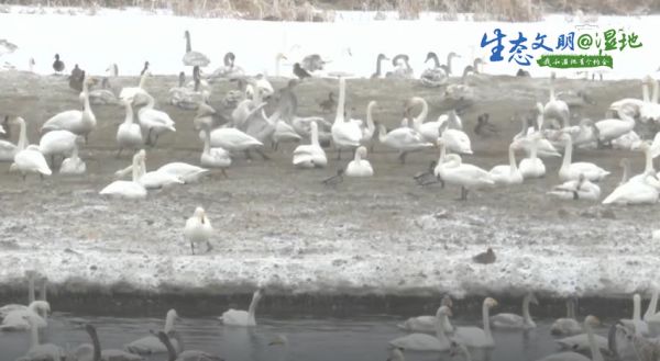新疆玛纳斯国家湿地公园管理局保护科科长 柴世元:我们监测数据表示,有810多只天鹅已经来这个地方过冬了。这个数据也是我们湿地公园自建成以来,数据达到最高的时候。