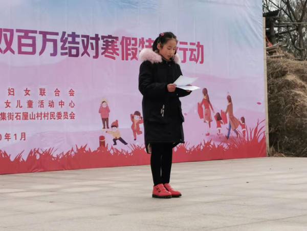 为使广大留守儿童、困境儿童度过一个安全、文明、祥和、温暖的寒假,在全社会营造关心关爱留守和困境儿童的良好氛围,1月17日,由武汉市妇联主办、武汉市妇女儿童活动中心承办的“把爱带回家” 双百万结对寒假特别行动走进黄陂区姚家集石屋山村开展,来自姚家集街的留守儿童、困境儿童及我市爱心家庭代表两百余人参加了活动。