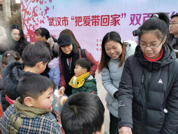 武汉市妇女儿童活动中心面向社会招募的20组爱心家庭,也来到了现场,带上自家小朋友的爱心礼物,赠送到石屋山村爱心结对小朋友手中,带去了冬日里的温暖。