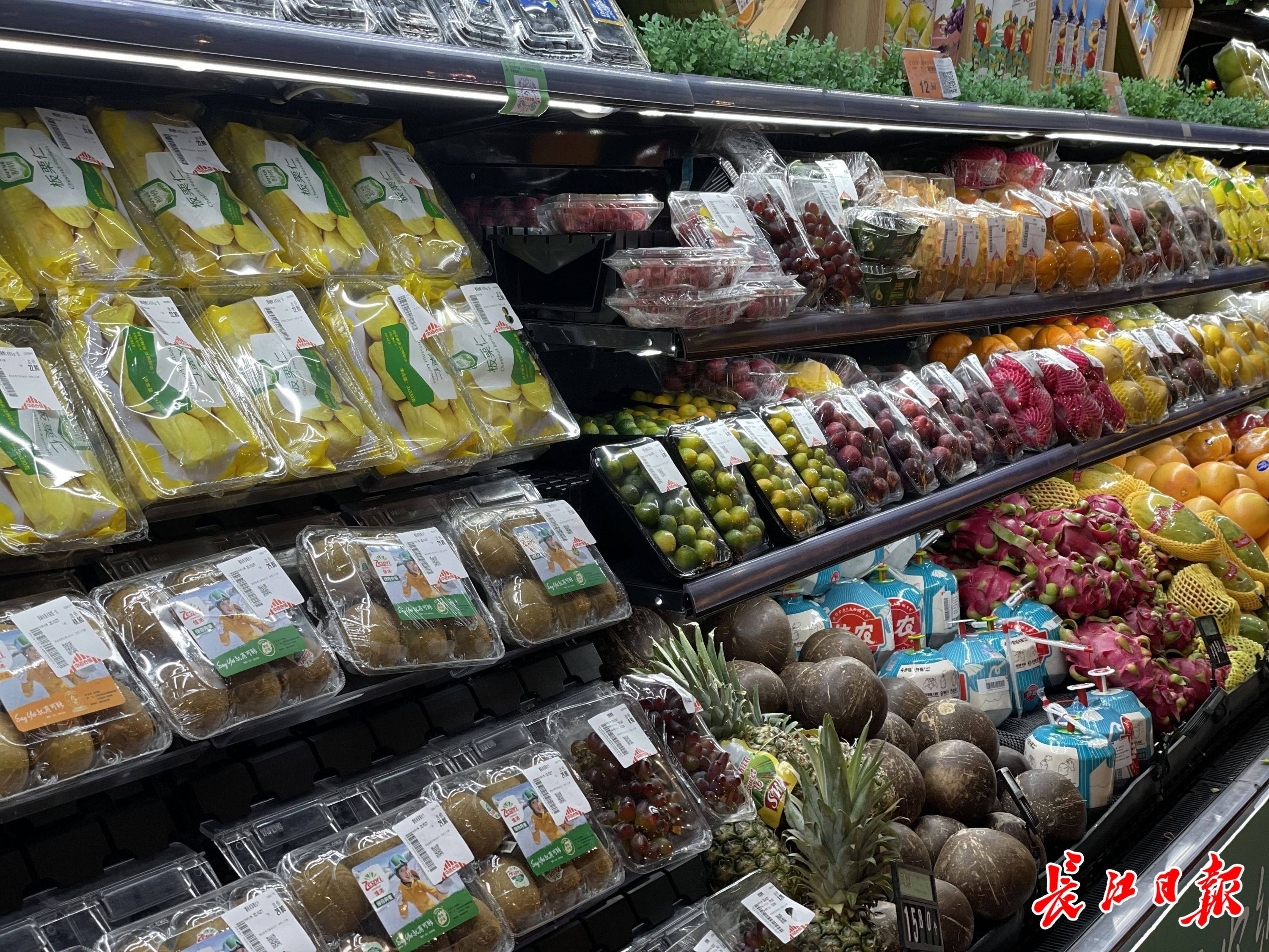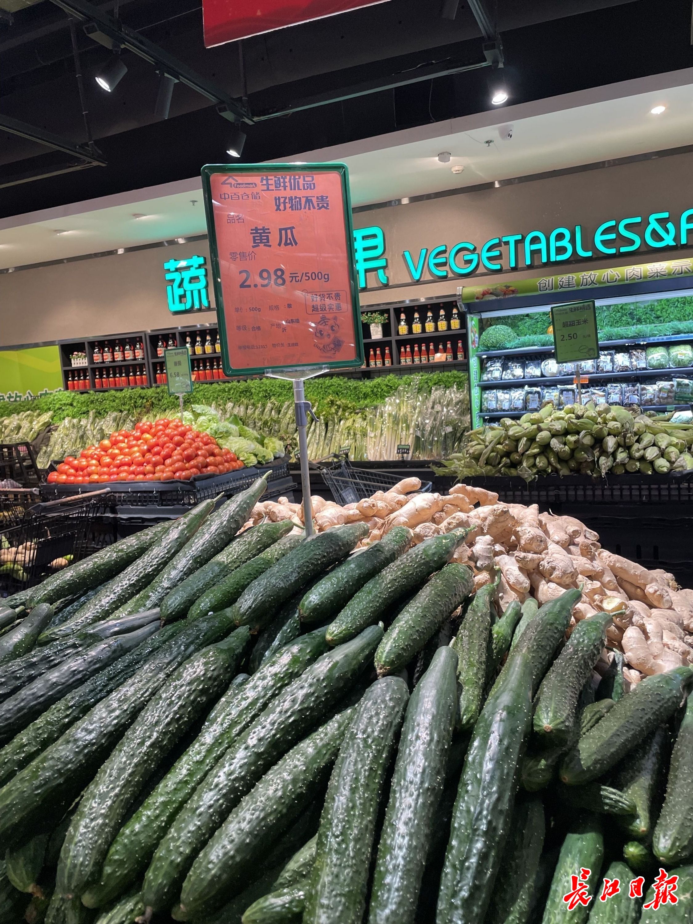 进入店内,首先进入视野的是生鲜区,新鲜的豆角、青椒等,满满当当排列。超市工作人员介绍,今日供应的应季蔬菜就多达11个品种,武汉市民喜欢的应季食藕、番茄等,货源充足,价格平稳。中百仓储每日还会提供低于市场价的生鲜优品,记者看到,当天推出的是黄白菜、黄瓜,每斤价格分别是2.58元、2.98元。