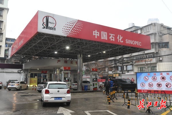 汉口台北路附近一加油站正常开放,车辆加油正常。