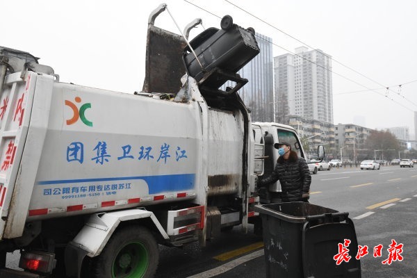 汉口循礼门青少年宫附近,环卫工人正在转运垃圾。