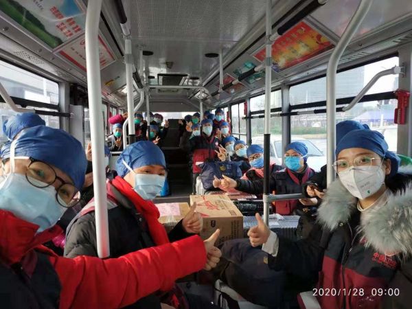 公交集团三公司承担“医疗通勤”,接送援汉“白衣天使” 。通讯员赵志宏供图