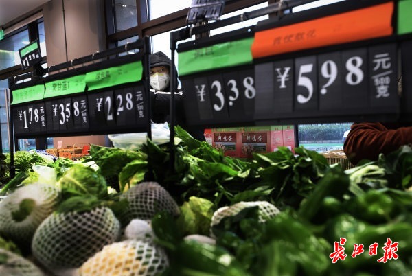 1月24日(除夕),中百超市东湖城店,生鲜蔬菜货源充足,价格平稳。记者邱焰 摄