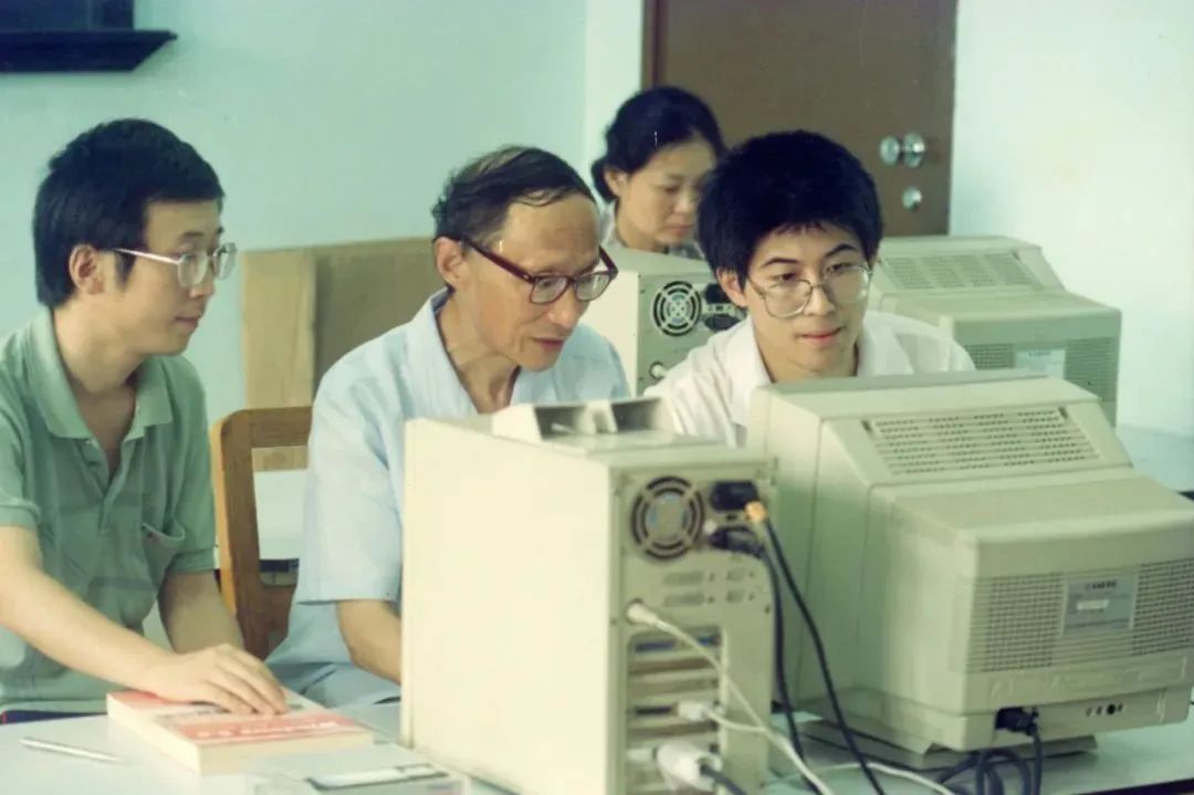 图为20世纪90年代初在实验室指导研究生。