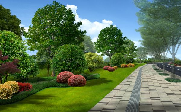 道路绿化隔离区:临近知音大道一侧通过植物形成缓冲带,局部形成地形,组团式种植,形成生态屏障,与道路相对隔离,又保证通风。